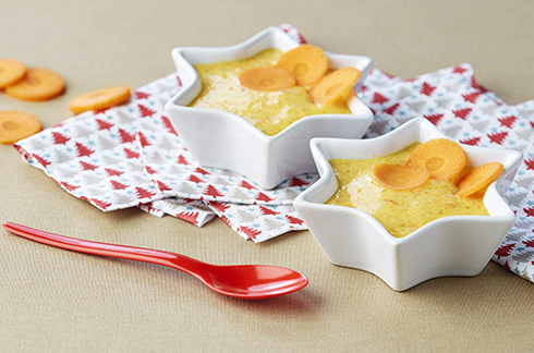 Schil en was de wortels. Snij ze in dunne schijfjes. Pel de tomaten, verwijder de zaden en snij het vruchtvlees in kleine blokjes. Doe de groente over in het eerste stoommandje van uw Nutribaby